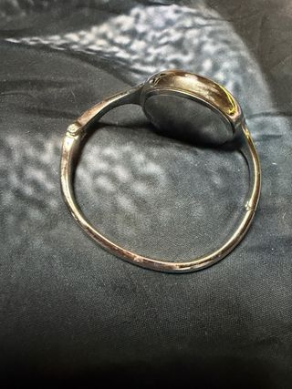 Pulsera con avalorios de trébol. No es de plata ni similar, es bisutería.