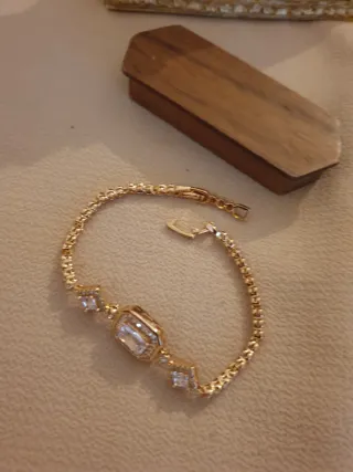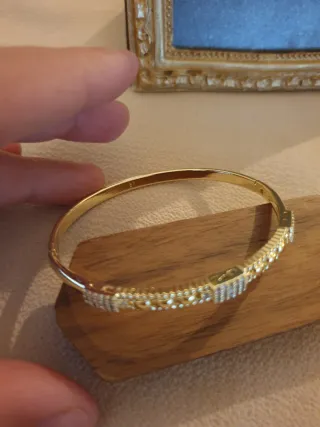 Elegante pulsera chapada en oro, perfecta para añadir un toque de brillo a tu estilo. Viene presentada en su caja original. - Diseño con incrustaciones de cristales. - Cierre seguro y fácil de usar.