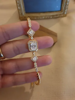 Elegante pulsera chapada en oro, a estrenar y con su caja original. - Diseño con eslabones rectangulares. - Detalles de pequeñas circonitas incrustadas.