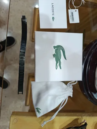 Pulsera de la marca Lacoste con un diseño elegante. - Color negro con detalles en verde. - Incluye caja y bolsa de la marca.