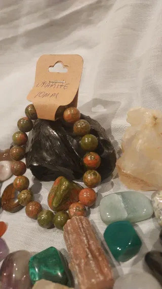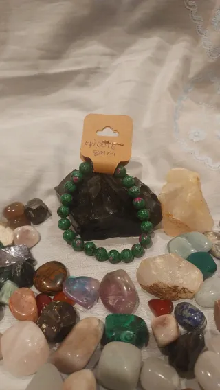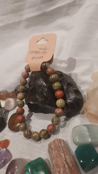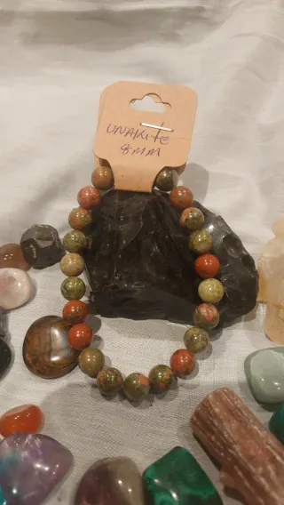 Pulsera elaborada con cuentas de piedra natural Unakita.Tamaño de las cuentas: 8mm. - Combinación de tonos verdes y rojizos.La unakita es conocida como una piedra de amor incondicional, equilibrio emocional y sanación del corazón. Al estar asociada al chakra del corazón, fomenta el amor propio, la autocompasión, la paciencia y ayuda a liberar bloqueos emocionales del pasado, promoviendo relaciones más armónicas, sanas y duraderas.
