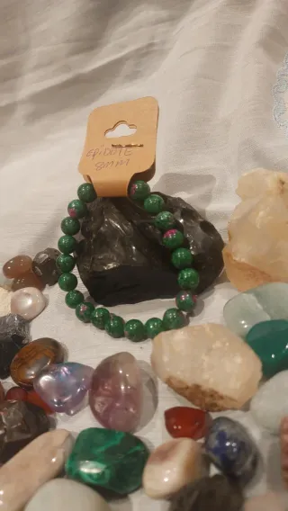 Pulsera de piedras naturales de Epidota con cuentas de 8mm. Piedras de Epidota. - Tamaño de las cuentas: 8mm.La epidota es una piedra espiritual de transformación, crecimiento personal y aumento de vibraciones, conocida por potenciar las energías positivas y fomentar la liberación de patrones negativos. Conectada al chakra del corazón, promueve la compasión, el amor propio y la sanación emocional, al tiempo que actúa como un amuleto para atraer la abundancia y la prosperidad.