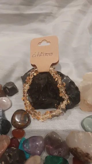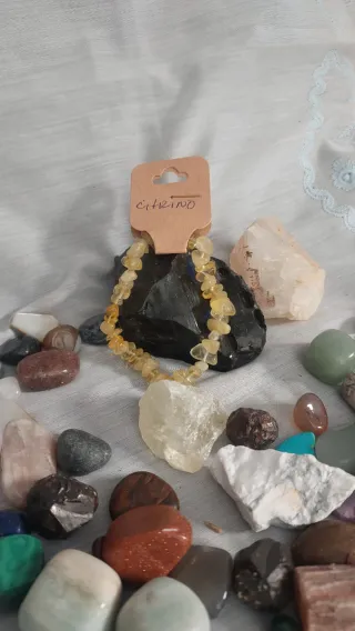 Pulsera elaborada con piedras naturales de citrino.Diseño con cuentas irregulares. - Coloración cálida y vibrante.El citrino es conocido espiritualmente como la "piedra del sol" y el "cristal de la abundancia". Se asocia con la energía positiva, atrayendo prosperidad, éxito y alegría. Se utiliza para activar el chakra del plexo solar, fomentando la confianza en uno mismo, la creatividad y la claridad mental, mientras protege contra energías negativas.