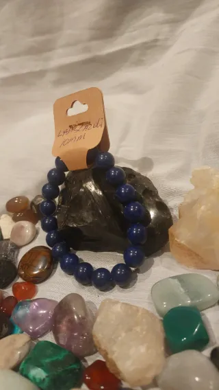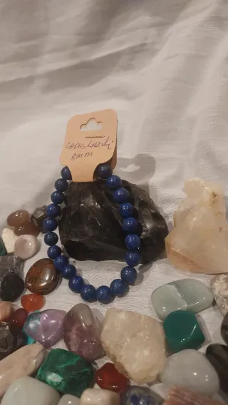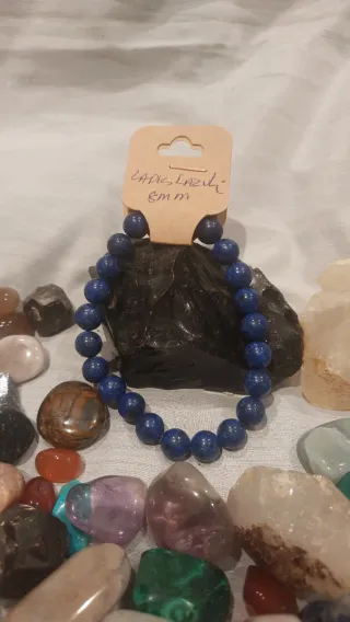 Pulsera hecha a mano con pequeñas piedras naturales.El lapislázuli es una piedra espiritual de gran poder, asociada históricamente con la sabiduría, la verdad, la comunicación clara y la protección divina. Se considera un potente activador de la intuición y el tercer ojo, facilitando la introspección, el crecimiento espiritual y la expresión auténtica al abrir el chakra de la garganta. -8mm