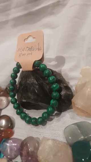 Pulsera elaborada con cuentas de piedra natural Malaquita.Tamaño de las cuentas: 8mm.La malaquita es conocida como la "piedra de la transformación" y un poderoso abridor del chakra del corazón, facilitando el amor propio, la compasión y la sanación emocional. Ayuda a liberar bloqueos, fomentar la expresión sincera de sentimientos y fortalecer las relaciones, promoviendo el equilibrio y el crecimiento personal en el amor.