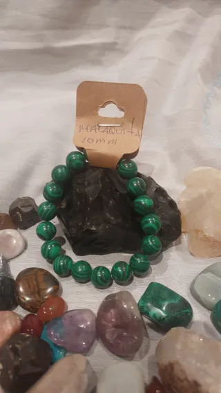 Pulsera elaborada con cuentas de piedra natural de Malaquita.Tamaño de las cuentas: 10mm. - Diseño con bandas concéntricas características de la Malaquita.La malaquita es conocida como la "piedra de la transformación" y un poderoso abridor del chakra del corazón, facilitando el amor propio, la compasión y la sanación emocional. Ayuda a liberar bloqueos, fomentar la expresión sincera de sentimientos y fortalecer las relaciones, promoviendo el equilibrio y el crecimiento personal en el amor.