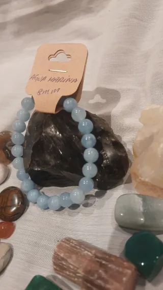 Pulsera de piedras naturales de Agua Marina.Piedras de 8mm de diámetro. - Diseño elástico para mayor comodidad.La aguamarina simboliza el amor eterno, la fidelidad y la confianza, consolidándose como una gema ideal para anillos de compromiso y relaciones duraderas. Asociada con la serenidad y la comunicación, ayuda a las parejas a superar obstáculos, fomentando la armonía emocional, la compasión y la pureza en el amor.