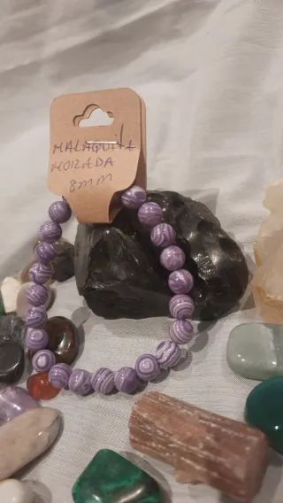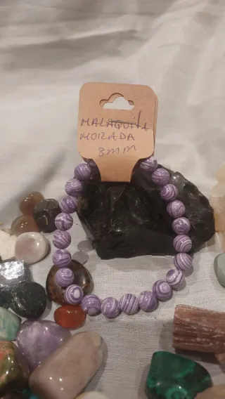 Pulsera de piedras naturales de Malaquita Morada.Tamaño de las cuentas: 8mm.
