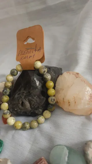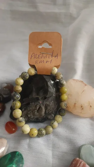 Pulsera elaborada con cuentas de piedra natural Prehnita.Tamaño de las cuentas: 8mm. - Diseño único y elegante.La prehnita es conocida espiritualmente como la "piedra sanadora de los terapeutas" y una piedra de amor incondicional, ideal para la meditación profunda, la introspección y la conexión con el Yo Superior. Su energía promueve la calma, alivia el miedo y ayuda a ordenar la vida emocional y mental, fomentando el desapego de lo innecesario.