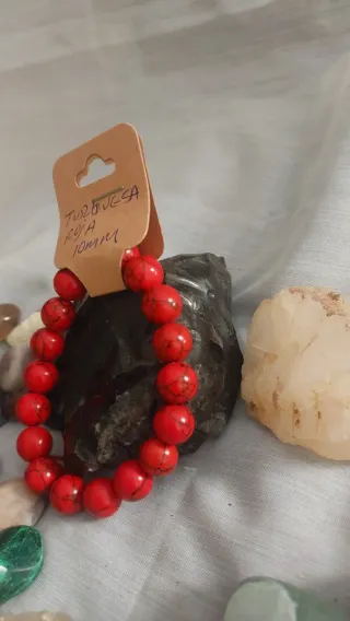 Pulsera de piedras naturales de turquesa roja.Tamaño de las cuentas: 10mm. - Diseño elástico para mayor comodidad.La turquesa roja es una piedra preciosa valorada por estimular el chakra raíz, proporcionando enraizamiento, vitalidad, fuerza y protección contra energías negativas. Se asocia con el aumento de la creatividad, la pasión y la resistencia física, siendo una herramienta útil para quienes buscan mejorar su conexión con la tierra y su seguridad personal.