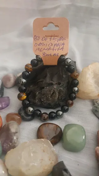 Pulsera de piedras naturales con triple protección.Elaborada con cuentas de ojo de tigre, obsidiana y hematita. - Tamaño de las cuentas: 8 mm.Ojo de tigre: fomenta la confianza, el enfoque y el coraje para alcanzar tus objetivos. Obsidiana: actúa como un escudo protector, eliminando energías negativas y bloqueos emocionales. Hematita: equilibra mente, cuerpo y espíritu, aportando estabilidad y serenidad.
