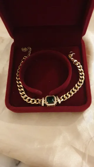 Pulsera chapada oro 18k con esmeralda y caja