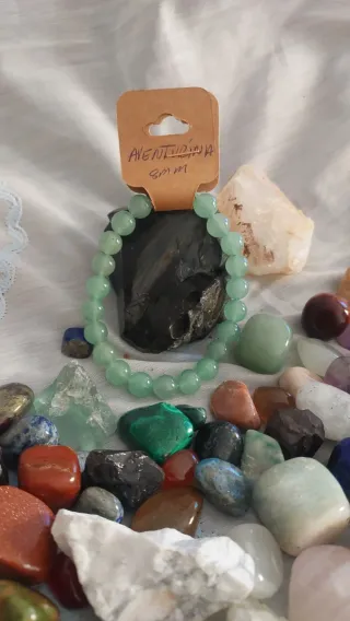 Pulsera de piedra natural Aventurina.Tamaño de las cuentas: 8mm.La aventurina es conocida espiritualmente como la "piedra de la oportunidad" y la buena suerte, ideal para atraer prosperidad, abundancia y éxito profesional. Vinculada al chakra del corazón, promueve la calma, el equilibrio emocional, la creatividad y la conexión con la naturaleza. Es un amuleto para el crecimiento personal y la confianza.