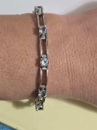 Pulsera de plata y circonitas, añado un eslabón para agrandar la si es necesario