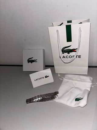 Elegante pulsera de la marca Lacoste. - Diseño de eslabones plateados. - Incluye caja y bolsa de la marca. Cualquier cosa me pueden preguntar sin problema✌️😊
