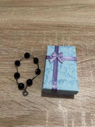 Pulsera de cuentas azules con cierre metálico.