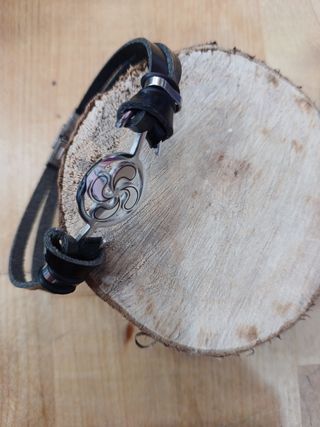 Pulsera lauburu de acero quirúrgico con correa de polipiel. Antes 35€.