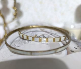 Preciosa pulsera elástica. Es flexible y cómoda de llevar. - Adornada con pequeñas perlas blancas. - Tiene una base dorada.