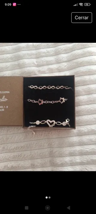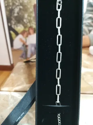 Pulsera con un diseño llamativo y vibrante, combinando varios colores. - Cadena de eslabones metálicos.ajustable - Tejido de hilo multicolor. Nunca usada me está grande,no vale en muñecas pequeñas