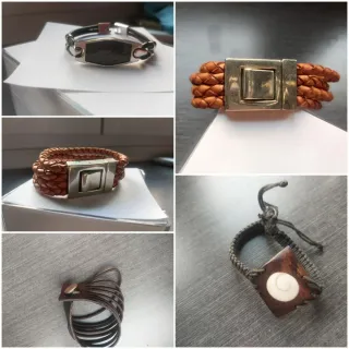 Conjunto de pulseras con un diseño juvenil y moderno. - Materialesl: cuero trenzado.acero... - Cierres y detalles en acero. - Estilo unisex.
