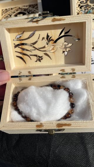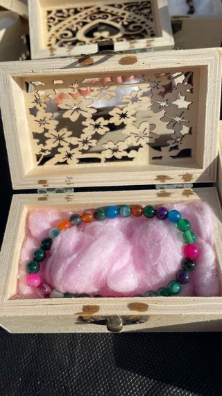 Caja madera con pulsera piedras naturales o colgan
