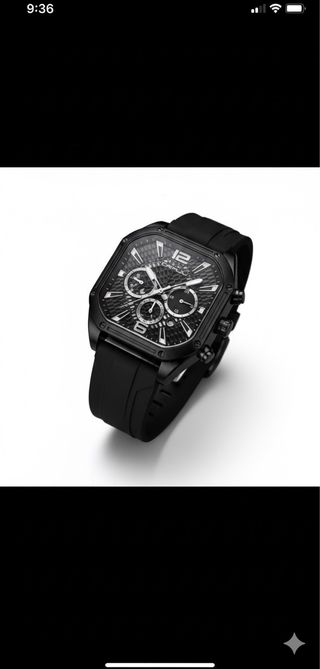 Reloj de pulsera con un diseño deportivo y moderno, combinando detalles dorados y negros. - Esfera con múltiples funciones. - Correa de material resistente. - Resistente al agua.