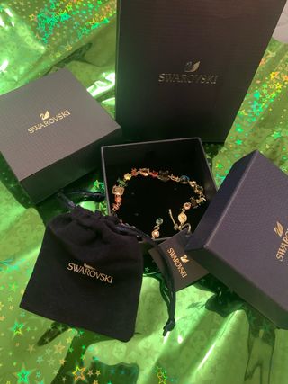 Elegante pulsera de la marca Swarovski con gemas de diversos colores. Viene con su caja original y bolsa de terciopelo. - Diseño con múltiples gemas. - Incluye caja y bolsa de protección.