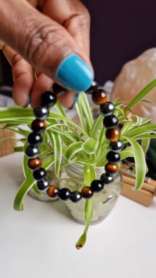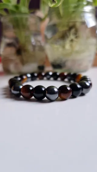 Pulsera de cuentas hecha a mano con un diseño que combina 3 piedras naturales. 8 mm - Cuentas de ojo de tigre. - Cuentas de obsidiana negra - Cuentas de hematita.