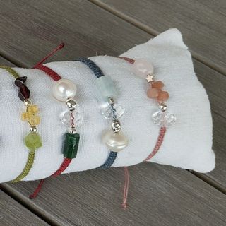 Pulseras macramé con piedras y plata .