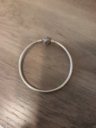 Pulsera rígida de la marca Pandora. - Diseño elegante y atemporal. - Plata. - Talla 19, 6'5 cm de diámetro - Edición limitada. Ya no se vende en tiendas.