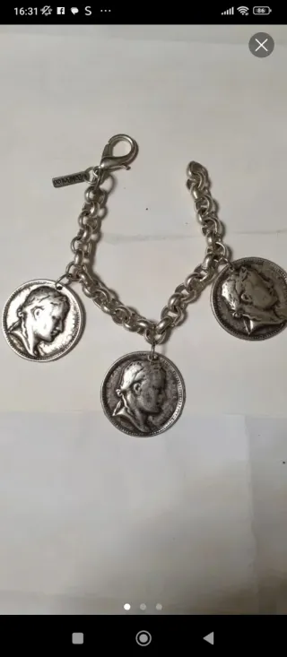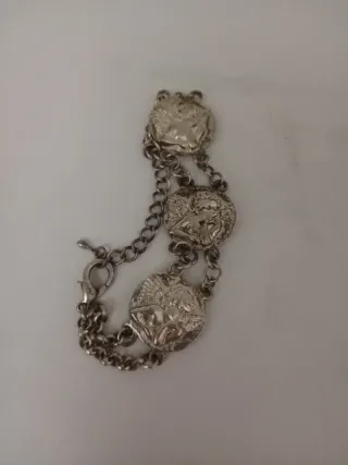 Elegante pulsera con varios dijes circulares. - Diseño con motivos grabados. - Cadena con cierre de mosquetón.