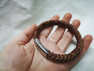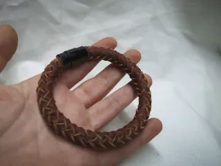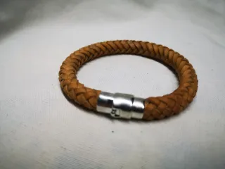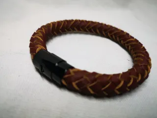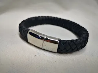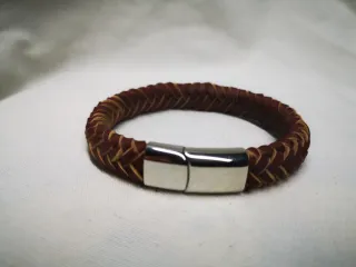 Pulsera de piel con un diseño trenzado y un cierre magnético. - Material: Piel. - Cierre: Magnético.