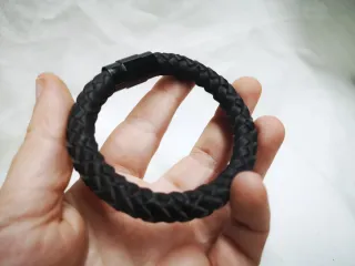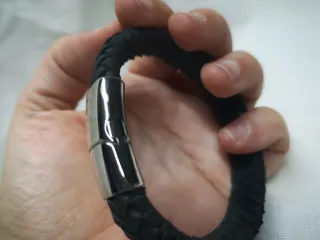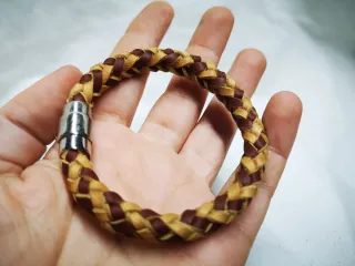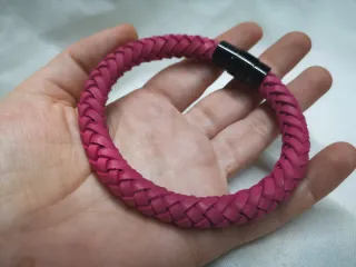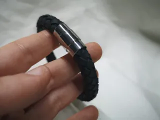 Pulsera de piel con un diseño trenzado y un cierre magnético. - Material: Piel - Cierre: Magnético