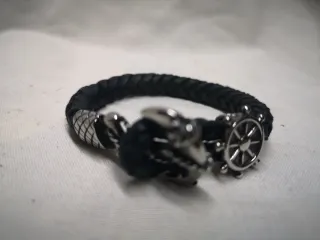 Pulsera artesanal de piel trenzada con detalles náuticos. - Diseño con ancla y rueda de timón. - Cierre de seguridad. Para más información de otros productos de este estilo, visita mi catálogo de whassap en el 622579540, gracias.