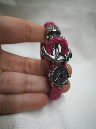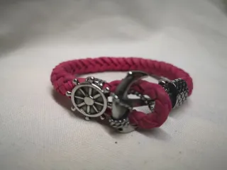 Pulsera artesanal con un diseño náutico. - Pulsera trenzada de piel. - Cierre con detalles de ancla y timón en Acero Inoxidable. - Color: rosa Para más información de otros productos de este estilo, visita mi catálogo de whassap en el 622579540, gracias.
