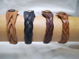 Pulsera de piel con diseño trenzado. Producto hecho a mano - Material: Piel. - Cierre de botón a presión. Disponible estos modelos en este momento. Importante saber medidas. Si kieres en otro tono pregunta Para más información de otros productos de este estilo, visita mi catálogo de whassap en el 622579540, gracias.