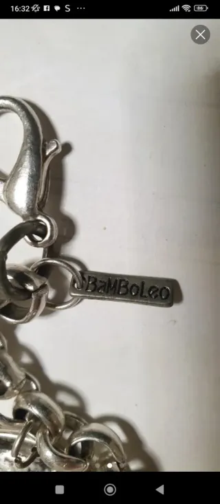 Elegante pulsera de la marca Bamboleo con un diseño de cadena y varios dijes. - Acabado en plata. - Cierre de mosquetón. - Dijes con grabados de perfiles.