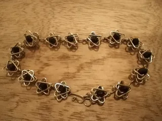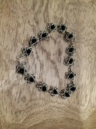Pulsera artesanal con piedras de ónix. - Diseño único con detalles en plata. - Cierre de gancho. - Ideal para complementar cualquier atuendo.