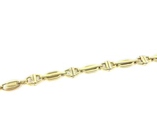 El precio mostrado es el de venta en nuestra tienda. El precio de este producto en nuestra página web puede ser diferente. Este artículo está disponible en nuestra tienda de Cartagena. pulsera oro 18k CC063_E720553_1 es un objeto que se ofrece en estado excelente. Todos nuestros productos cuentan con garantía de 3 años y un plazo de devolución de 14 días. Tipo de oro en kilates: Oro primera ley (oro 18k) | Gramos: 7.29 | Marca: Sin marca | Modelo: Sin modelo | Contraste: No | Detalles joya: Media caãa oro grecas 18 kts | Piedras: 0 | Peso piedras: 0 | Genero-tipo: Mujer | Diamante: No | Estado producto: No | Piedra con cal