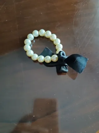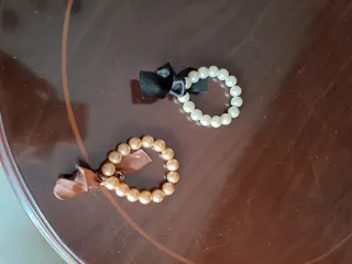 Conjunto de dos pulseras adornadas con perlas y lazos. - Una pulsera es de perlas blancas con un lazo negro. - La otra pulsera es de perlas color crema con un lazo marrón. - solo se pusieron una vez . - Las dos 5€