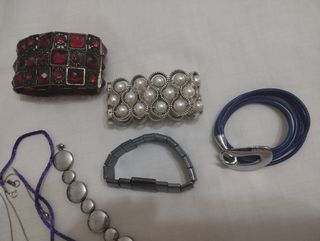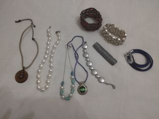 Elegante conjunto de collar y pulsera con perlas y detalles en plata. - Diseño delicado con perlas. - Cierre y adornos en plata.