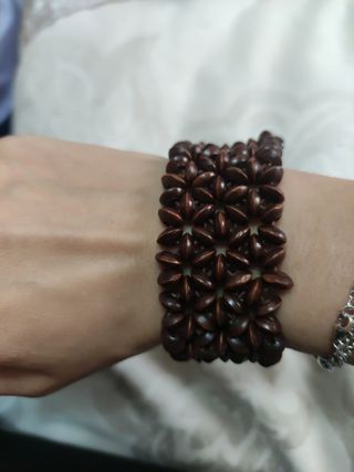 Preciosa pareja de brazaletes vintage. Son de estilo étnico y lucen elegantes. - Hechos con hueso y metal. - Cierre de presión. - Decorados con piedras semipreciosas.