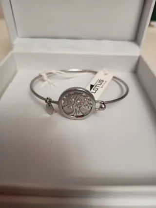 Elegante pulsera acero inoxidable estyle con un diseño de árbol de la vida. - Acabado plateado. - Detalle de pequeñas circonitas. - Cierre de mosquetón.