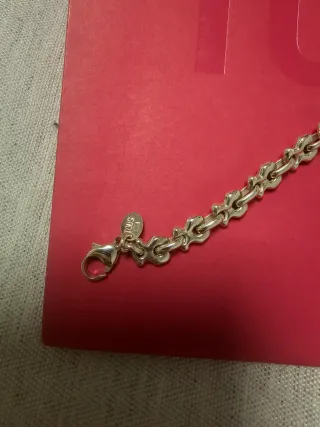 Elegante pulsera con un diseño de cadena. En las fotos no se aprecia pero se ve en color dorado vivo - Acabado dorado. - Cierre de mosquetón. Tag, oro, dorado dorada esclava