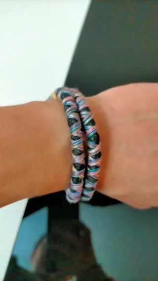 Conjunto de pulseras hechas a mano con técnica macramé en hilo de seda. Minimales, muy finitas para llevar solas o varias a la vez, muy estilosas, escríbeme y elige tus colores y te las envío. Unidad 4 eur, dos unidades 6 eur y a partir de 3 unidades a 2,50 la unidad - Diseños variados y coloridos. - Cierre ajustable.
