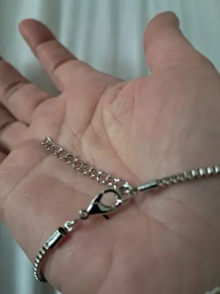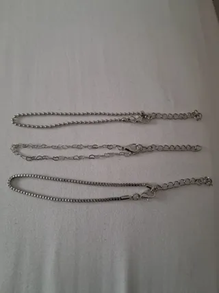 Conjunto de tres pulseras. - Diseño de cadena de eslabones. - Cadena de bolitas. - Cadena con eslabones en forma de corazón. Me están grandes. Tengo la muñeca muy pequeña.