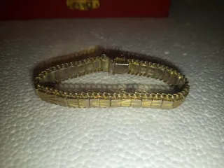 El precio mostrado es el de venta en nuestra tienda. El precio de este producto en nuestra página web puede ser diferente. Este artículo está disponible en nuestra tienda de Elche. pulsera oro 18k CC043_E662736_2 es un objeto que se ofrece en estado excelente. Todos nuestros productos cuentan con garantía de 3 años y un plazo de devolución de 14 días. Gramos: 9.74 | Contraste: No | Tipo de oro en kilates: Oro primera ley (oro 18k) | Detalles joya: Pulsera 2 oros | Piedras: 0 | Peso piedras: 0 | Informacion adicional: Revisar el estado de uso en las imágenes. | Genero-tipo: Mujer | Piedra con calor: 19 | Tipo de piedra: Sin p