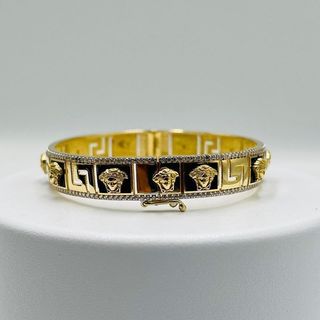 PULSERA RIGIDA MEDUSA ONIX GRECA Y CIRCONITAS 18K