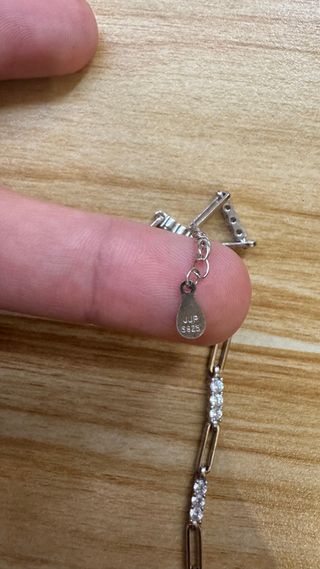 Plata 925,logo central con circonita laterales pequeña circonita.Medida total 20cm varias posiciones.