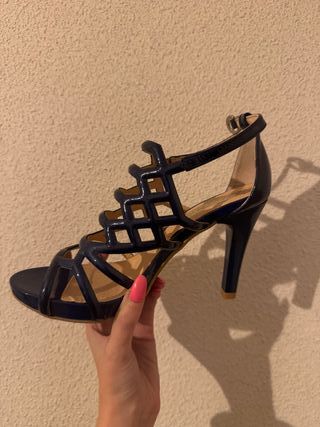 Elegantes sandalias de tacón alto con un diseño de tiras. - Color azul marino. - Tacón de aguja. - Cierre de pulsera.